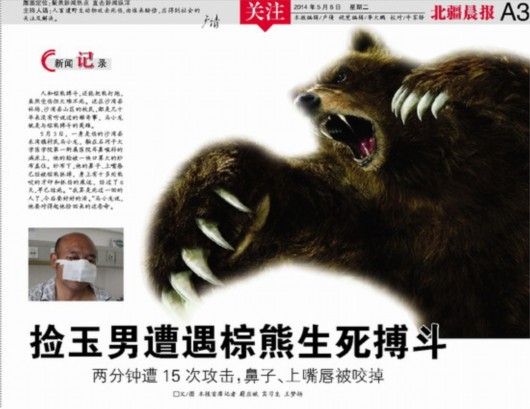 19、新疆壮汉野外遇棕熊搏斗2分钟 打退15次攻击