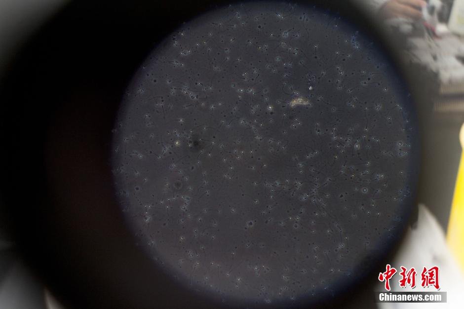 目前“全上海的不孕不育率已经高达10%”,但在上海市人类精子库中,进行“自精保存”的精子数量不到1500份。图为高倍显微镜下的人类精子。