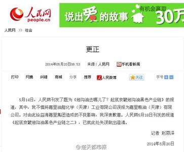 17、人民网记者就地沟油报道错误向企业致歉