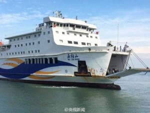 赴越撤离中方人员的首船“五指山”号客轮返抵海南省海口市,乘客们早早地站上甲板,期待着早日回到祖国的陆地,早日与家人团聚。 “五指山”号客轮共接回989名中方在越人员。为“五指山”号客轮护航的中国海巡船,船上打出“欢迎同胞们回国”的横幅。