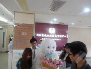原来,这是苗苗交往两年的男朋友小陈,他将自己装扮成了一颗“精子”,想给女友一个特别的惊喜。