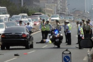 14、曝北京一无牌奥迪车撞飞交警 武警赶到现场处理
