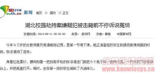 【导读】2014年6月10日上午,湖北省潜江市浩口镇第三小学发生劫持事件,经过多方努力,最终事件以歹徒已被击毙告终。湖北潜江校园劫持案当天经媒体报道后,在网上引发强烈的舆论反响,事件话题出现暴涨,成为这两天各大媒体舆论聚焦热点。而关于犯罪嫌疑人背后的作案动机也被媒体曝光,引起舆论争论。