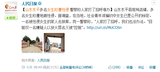 媒体披露:东平多名初中女生遭地痞性侵