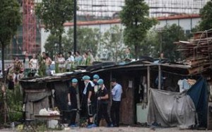 7月20日,杭州余杭区一简易棚租房内的两名女孩死亡,几名市民在棚后围观。经警方勘查认定,两女孩系他杀。当晚,余杭公安官方微博发布悬赏通告,经查,臧纪超(男,54岁,安徽人)有重大作案嫌疑。记者到达现场时,简易棚租房外已经被警戒线封锁,刑侦警察正在警戒线里忙碌。
