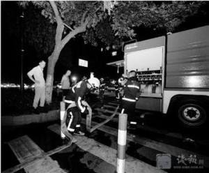 昨晚8点,可能因为是周六,天目山路、文三路、保俶路、教工路上依旧车流如梭。可接下来突然发生的变故,几乎让所有的司机和行人都愣了神——马路两侧的行道路灯一齐陷入了黑暗。消防官兵从消防车与路口消防桩上接出了两路水管,一直铺设了五六十米,从巷子口拉至起火的庆丰变电所。