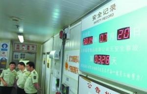 昨晚,上海食药监管人员检查上海福喜公司,公司通道内悬挂的电子显示屏显示,该公司已328天无安全事故。