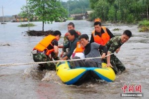 7月21日,受大范围降雨天气影响,黑龙江省伊春市多处地区水位上涨,部分低洼地带出现内涝,消防官兵经3小时救援,成功救援22名被困民众,并将其转移至安全地带。