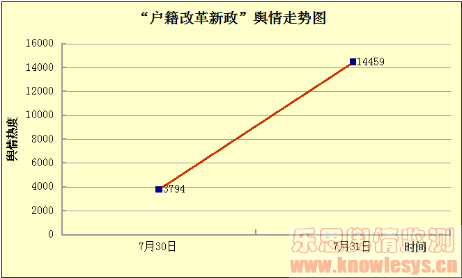 户籍改革和民众生活息息相关,30日国新办发布户籍改革意见,立即引起了社会的广泛关注,31日各大报纸头版头条几乎都是“户籍改革新政”,而各大网媒亦对此事纷纷进行转载和报道,网友在论坛和微博上对《意见》的讨论也是如火如荼。仅仅在新浪微博上,截至31日下午4时,“户籍改革新政”和“户籍改革”微话题阅读量就达4790多万,微博讨论数达2.6万多条。