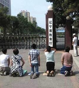 2014年7月31日,辽宁省沈阳市,由于近一周来在辽宁省各部门奔走上访无果,报考沈阳音乐学院的四十余名学生家长代表今天选择在辽宁省教育厅门前集体下跪,以祈求辽宁省教育厅出面给予说法。