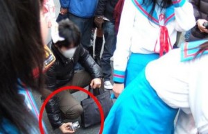 7、男子地铁偷拍女乘客被抓现行 单膝跪地求饶