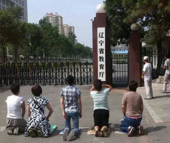 2014年7月31日,辽宁省沈阳市,由于近一周来在辽宁省各部门奔走上访无果,报考沈阳音乐学院的四十余名学生家长代表今天选择在辽宁省教育厅门前集体下跪,以祈求辽宁省教育厅出面给予说法。