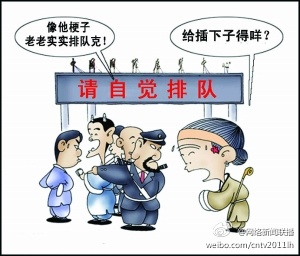 8、内地女子在港插队被拍照 用雨伞插向孕妇腹部