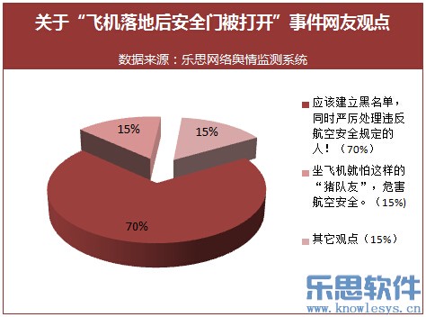 据抽样调查所得网友言论看,7成以上网友建议我国航空公司应该建立黑名单,对违反航空安全规定的人作出禁乘一定时间的处罚。而面对越来越多的乘客擅自打开飞机安全门的事件,目前我国除了《民用航空安全保卫条例》和《治安管理处罚法》外,没有更严厉的处罚,因此网友亦建议国家应该出台更严厉的航空安全法规严肃处理类似情况。近年来,尤其是2014年,世界航空事故多发,航空安全问题成为了社会普遍关注的焦点。毫不夸张地讲,飞机的任何一个细节都不容忽视!否则可能会造成无法挽回的后果。