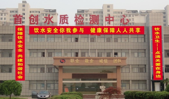 报道称,在淮南市城乡建设委员会网站“城乡建设新闻”栏目中,看到《淮创水质检测中心顺利通过省级资质认定现场评审》新闻,新闻发于12月12日,配发的是“首创水质检测中心”的大楼外景。大楼上挂着一条横幅和两条竖幅。图片上看不出条幅有一点折皱,中间的横幅还将大楼前飘扬的国旗遮挡住了。