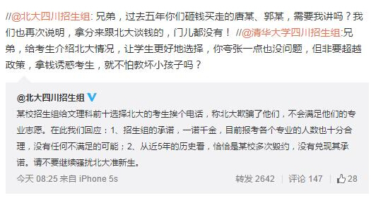 @清华大学四川招生组:兄弟,给考生介绍北大情况,让学生更好地选择,你夸张一点也没问题,但非要超越政策,拿钱诱惑考生,就不怕教坏小孩子吗?