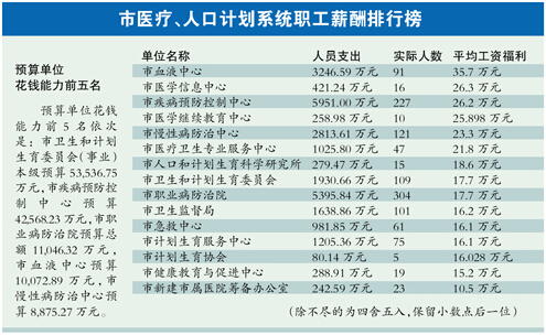 在深圳市医疗和人口计划的15个单位中,人均工资最多的为深圳市血液中心,达到35.7万元,深圳市医学信息中心和市疾病预防控制中心分别以26.3万元和26.2万元位列人均工资福利榜第二和第三。人均工资最低的是深圳市新建市属医院筹备办公室,人均工资为10.5万元,甚至比人均工资倒数第二名的深圳市健康教育与促进中心还差了近5万元。