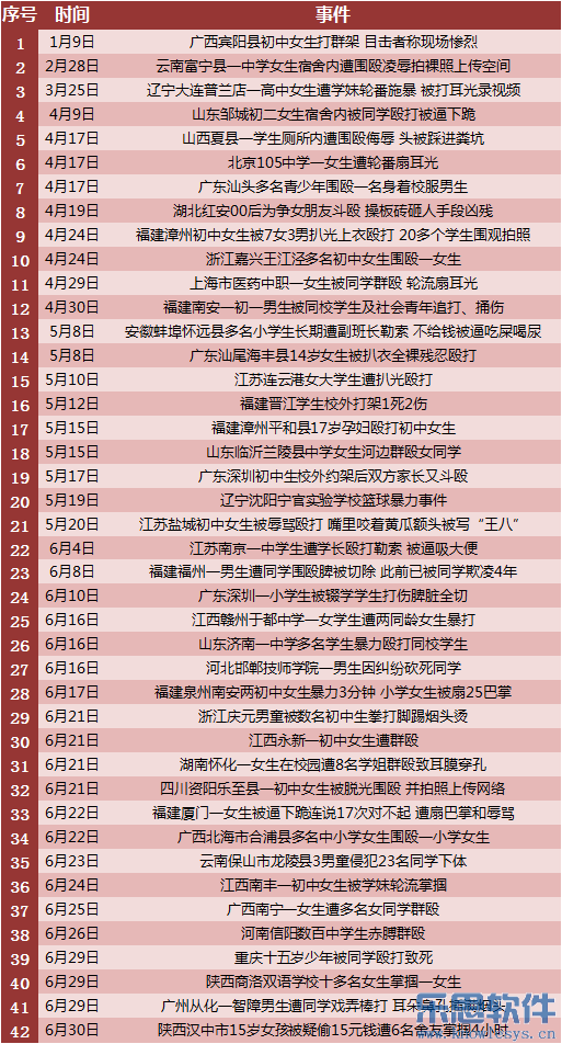 一.2015上半年媒体曝光校园暴力事件