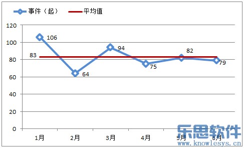 从热点事件爆发走势看,2015上半年平均每月约爆发热点事件83起,其中1月份热点事件最多(106起)。