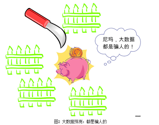 那头“悲催”的猪,之所以发出“大数据都是骗人的啊”呐喊,是因为它的得出了一个错误的“历史规律”:根据以往的数据预测未来,它每天都会过着“饭来张口”的猪一般的生活。但是没想到,会发生“黑天鹅事件”——春节的杀猪事件。