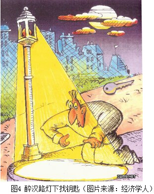 一天晚上,一个醉汉在路灯下不停地转来转去,警察就问他在找什么。醉汉说,我的钥匙丢了。于是,警察帮他一起找,结果路灯周围找了几遍都没找到。于是警察就问,你确信你的钥匙是丢到这儿吗?醉汉说,不确信啊,我压根就不知道我的钥匙丢到哪儿。警察怒从心中来,问,那你到这里来找什么?醉汉振振有辞:因为只有这里有光线啊!