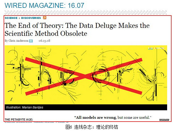 3.不再需要统计学模型,只要有大量的数据就能完成分析目的,印证了《连线》主编Chris Anderson 提出的“理论终结”的论调。