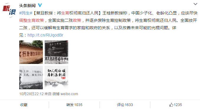 这次生育政策的调整,广大网友都纷纷吐槽。多年来的计划生育使得国家进入老龄化社会,而且征收了大量高额的社会抚养费,都不知用到哪里去了!这次讨论是否全面开放二胎,也一定程度上让利益集团的利益受损,会给网友一种错觉,讨论就是变相的怎么收费,因为没了计划生育就不能收取社会抚养费了。所以国家制定政策的时候,要广征民意,而不是高高在上的那些领导们和专家们的讨论得出结果,就出台一些政策,毕竟生育是民众自己的权利,不能说你让我生我就生吧,这是要看个人意愿的。所以要想舆论是积极的,就要听取多数人的心声,得到多数人的支持。