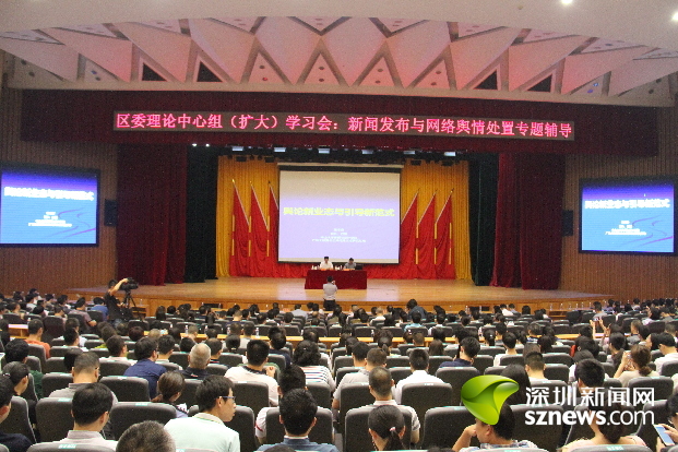 为进一步增强南山区各有关单位新闻发布意识,提高新闻应对及网络舆情处置引导能力,5月19日下午,南山会堂举行区委中心组(扩大)学习会,邀请了中山大学传播与设计学院院长张志安教授,以新闻发布与网络舆情处置为主题做学习辅导报告。