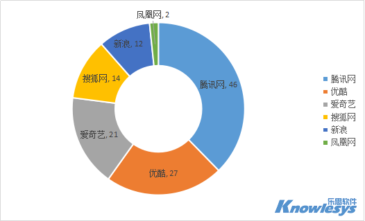 截至目前参与报道的视频媒体TOP6包括腾讯网、优酷、爱奇艺、搜狐等多家有影响力的视频网站。其中,排在前三的是腾讯网、优酷和爱奇艺,相关信息分别为46条、27条和21条。