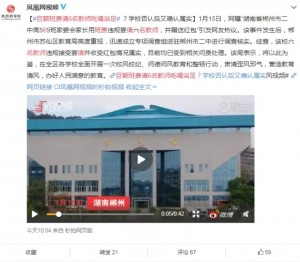 1月16日,乐思舆情监测系统 监测到 @凤凰网视频 发布的湖南郴州某中学相关的重点舆情。