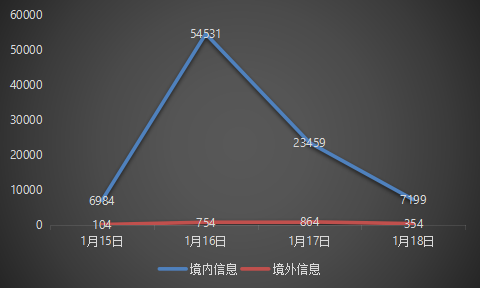 由总体舆情分析可知,境内舆情声量在事件爆次日达到最高,即1月16日达到最大值,当天微博话题#中美签署第一阶段经贸协议#登上热搜,之后舆情总体呈现下降趋势,截至1月18日,舆情热度依旧较高;境外舆情声量在1月17日达到最高,随后也是呈现下降趋势。