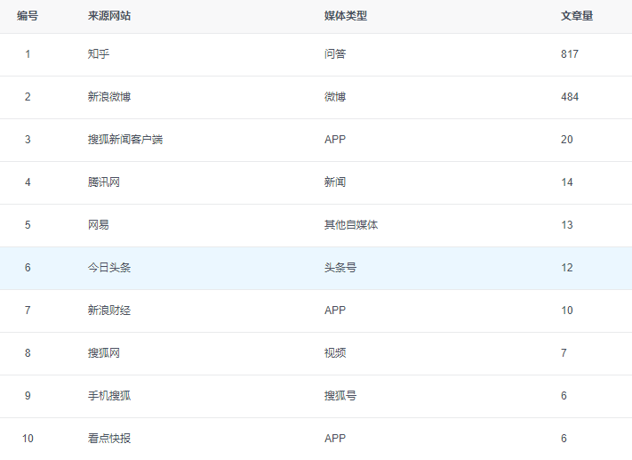 二、舆论平台主要分布在问答(知乎)和微博等自媒体平台