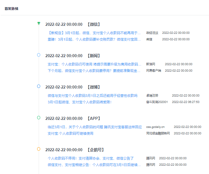 近三天,根据乐思舆情监测系统显示关键词“支付宝+个人收款码”获取到5808篇信息,主要分布在微信公众号、新浪微博、腾讯网、网易、搜狐。