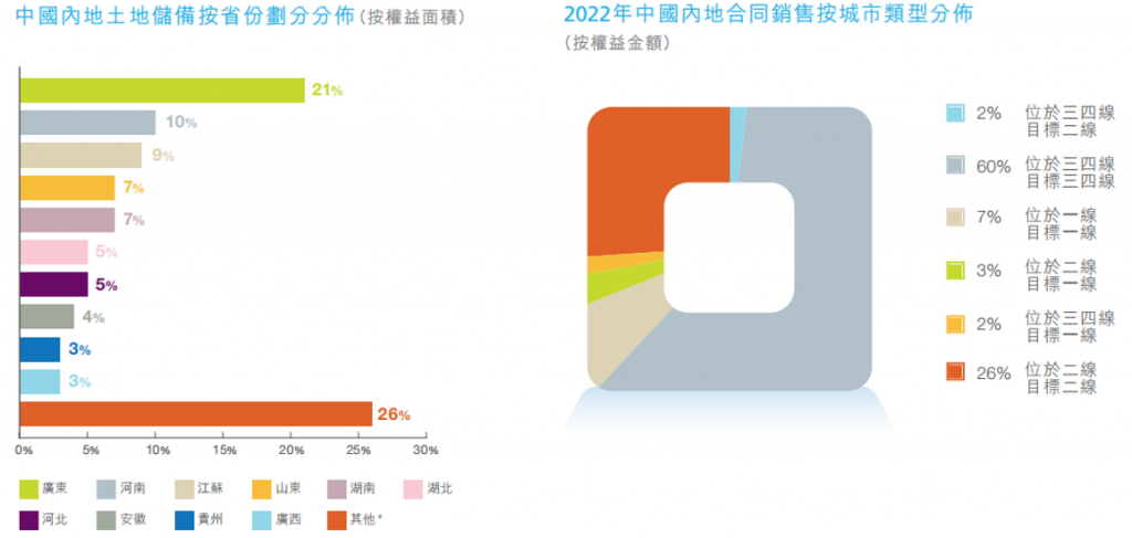 图:2022年碧桂园合同销售、土地储备的地区分布:三四线为主