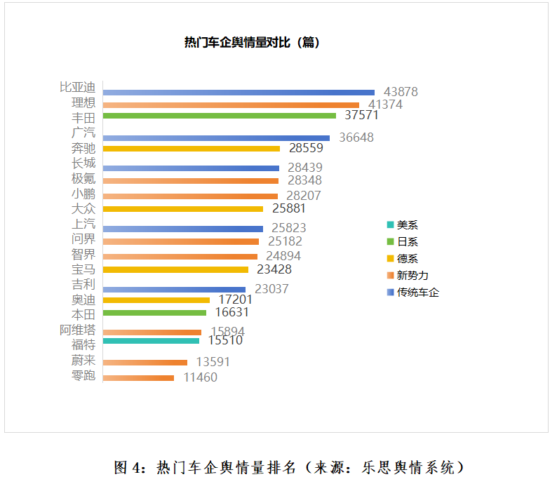 11.15-11.20,各品牌广州车展相关舆情声量排名如下,其中以新势力舆情量最高,其次是传统造车品牌,德系和日系尤其是奔驰和丰田的舆情量也很高,美系的福特舆情量相对较低,特斯拉没有参会。