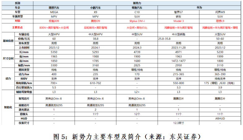其中,最热门的新势力品牌有理想MEGA、小鹏X9、零跑C10、华为系的智界S7和问界M9等:
