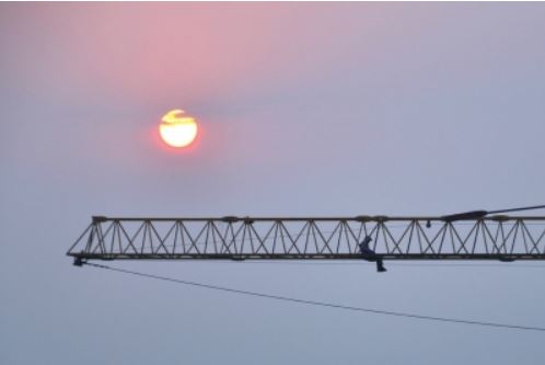 昨天下午,记者在现场看到,该男子坐在吊臂远端,并不时调整身体位置。一名头戴红色安全帽、身上系着防坠挂锁的救援人员,开始从建筑与塔吊连接处向上攀爬。