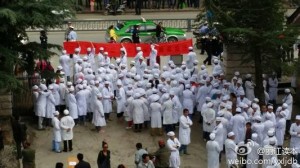 2014年8月27日上午,云南丽江玉龙县医院全体医护人员罢工,站在医院门口拉横幅抵制医闹还医院安宁。记者正在现场了解情况。