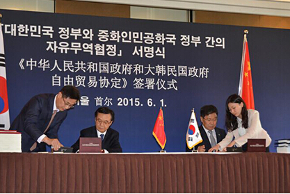6月1日,中韩两国政府正式签署中韩自由贸易协定:①开放水平方面,双方货物贸易自由化比例均超过税目90%、贸易额85%;②协定范围涵盖货物贸易、服务贸易、投资和规则等17个领域;③双方将以负面清单模式继续开展服务贸易谈判。